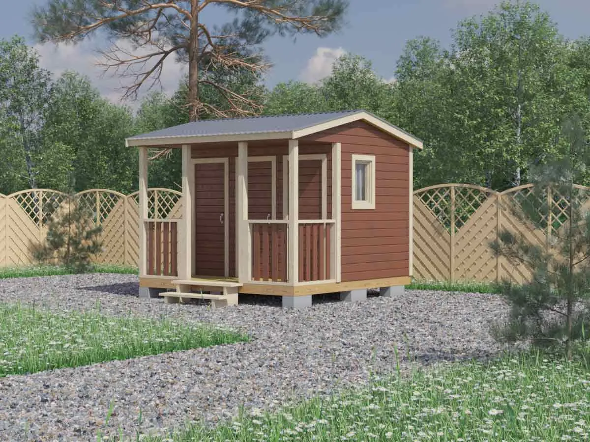 ![]() | Бытовка для дачи в стиле хай-тек с цветным профлистом 3х2.4 | 3х2,4 | 7,2 | ![]() | ДВП-Оргалит: 124 000 | Вагонка дерев.: 132 000 | OSB: 130 500 |